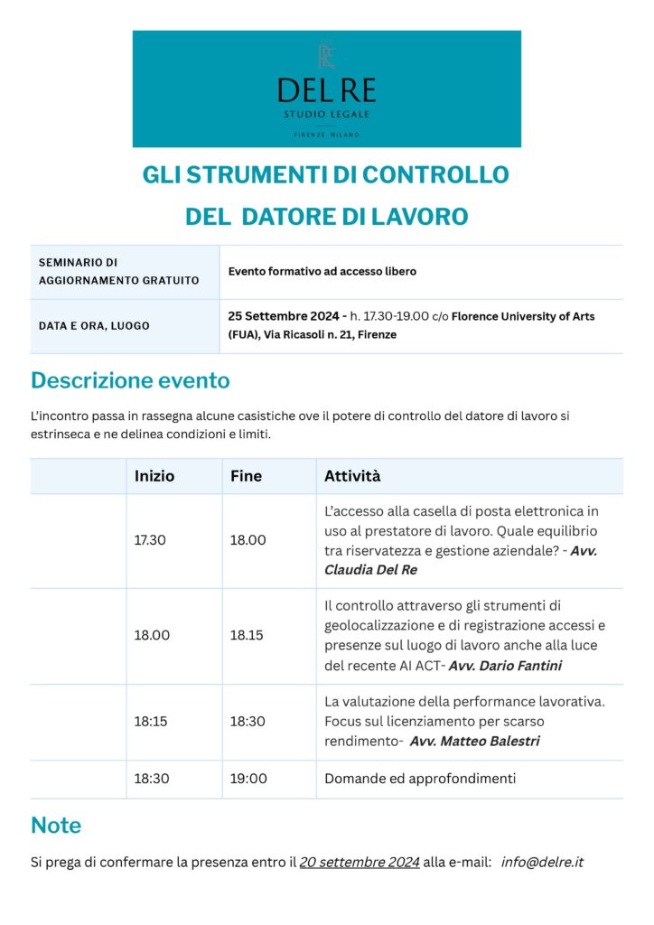 SEMINARIO DI STUDIO “GLI STRUMENTI DI CONTROLLO DEL DATORE DI LAVORO”
