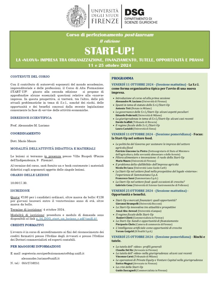 25.10.2024-Lezione dell’Avv. Claudia Del Re su “La tutela dell’ ‘idea’: profili generali ” nel Corso di perfezionamento UNIFI “La nuova impresa tra organizzazione, finanziamento, tutele, opportunità e prassi “