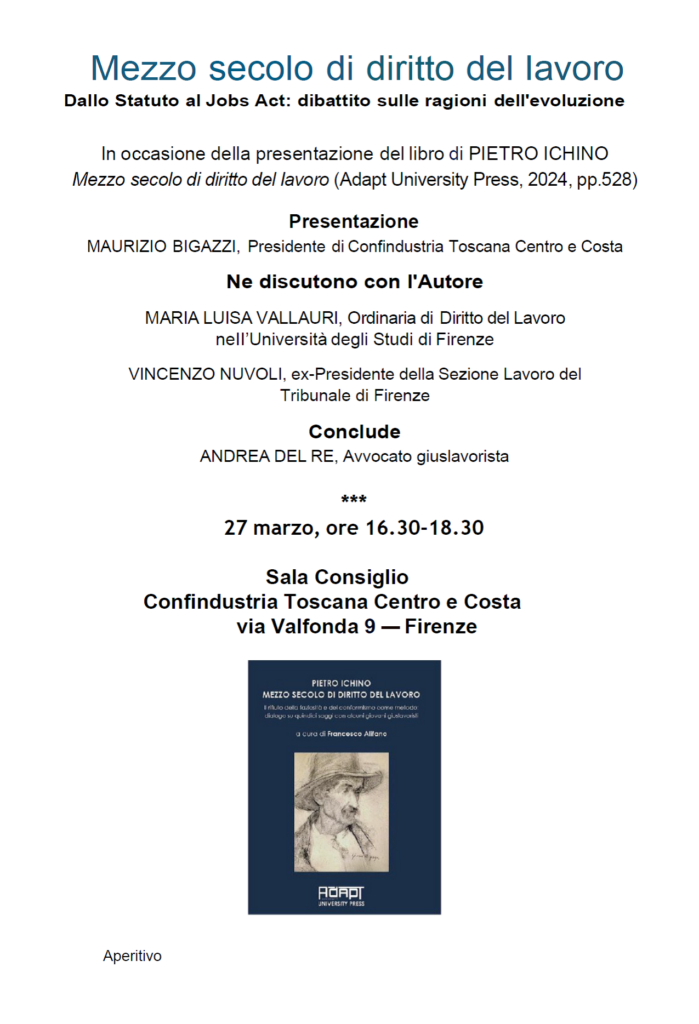 27.03.2025: L’Avv. Andrea Del Re interviene in occasione della presentazione “Mezzo secolo di diritto del lavoro. Il rifiuto della faziosità e del conformismo come metodo: dialogo su quindici saggi con alcuni giuslavoristi” presso Confindustria Firenze.