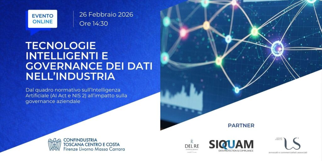 26.02.2026-Intervento dell’Avv. Claudia Del Re su “Privacy e Intelligenza Artificiale: nuove sfide per la protezione dei dati” al Webinar organizzato da Confindustria Toscana Centro e Costa e Siquam